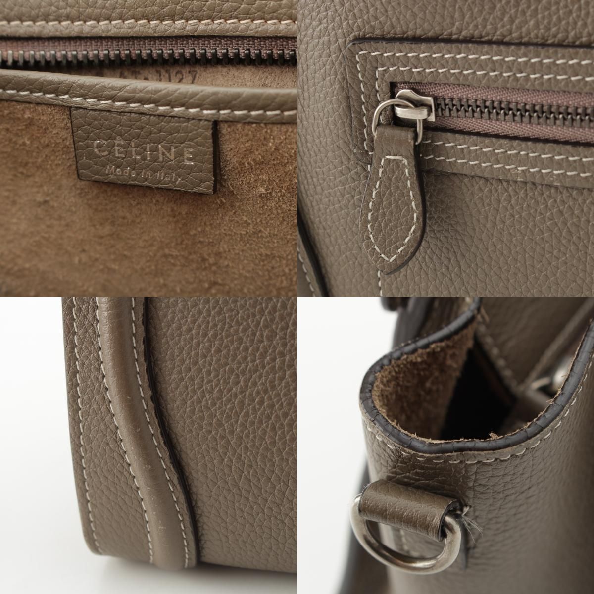 セリーヌ ラゲージ ナノショッパー ドラムドカーフスキン 2 WAY ショルダー ハンドバッグ グレージュ