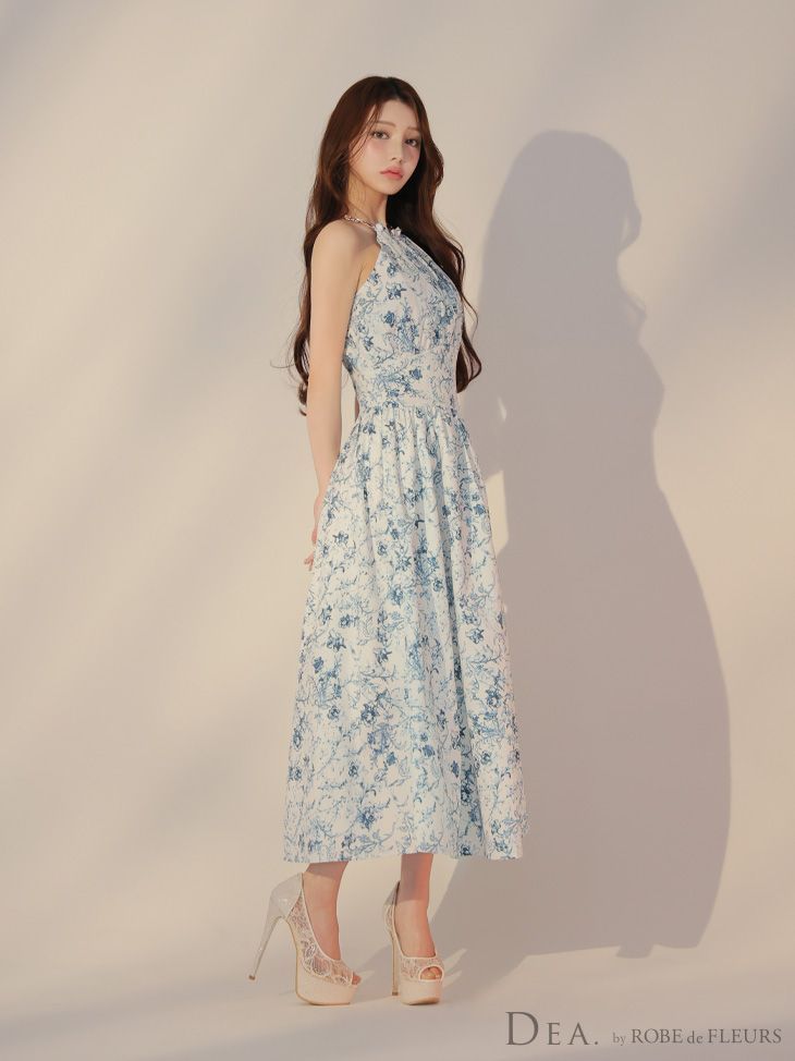 ブルー DE 3783-BL-2503 Lサイズあり DEA.by ROBE FLEURS|ディアバイローブドフルール 花柄| ホルターネック| アメスリ| フ | ロング| ワンピース| ミモレ丈| ミディアムドレス| キャバドレス long