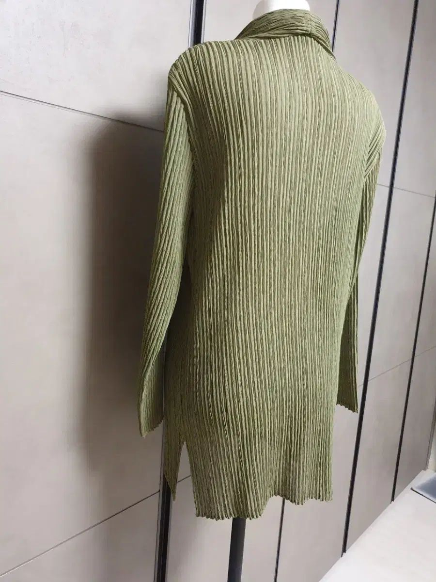 ナチュラルオリーブカラーのロングプリーツカーディガン。ちらつきのある素材が高級感を醸し出しています。シーズン中におしゃれに着こなすのに最適です。ご不明な点がなければ、すぐに安心してお支払いいただけます!