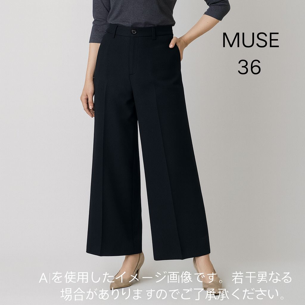 AO 0686 MUSE 日本製 ウールワイドパンツ 36 ブラック系 秋冬