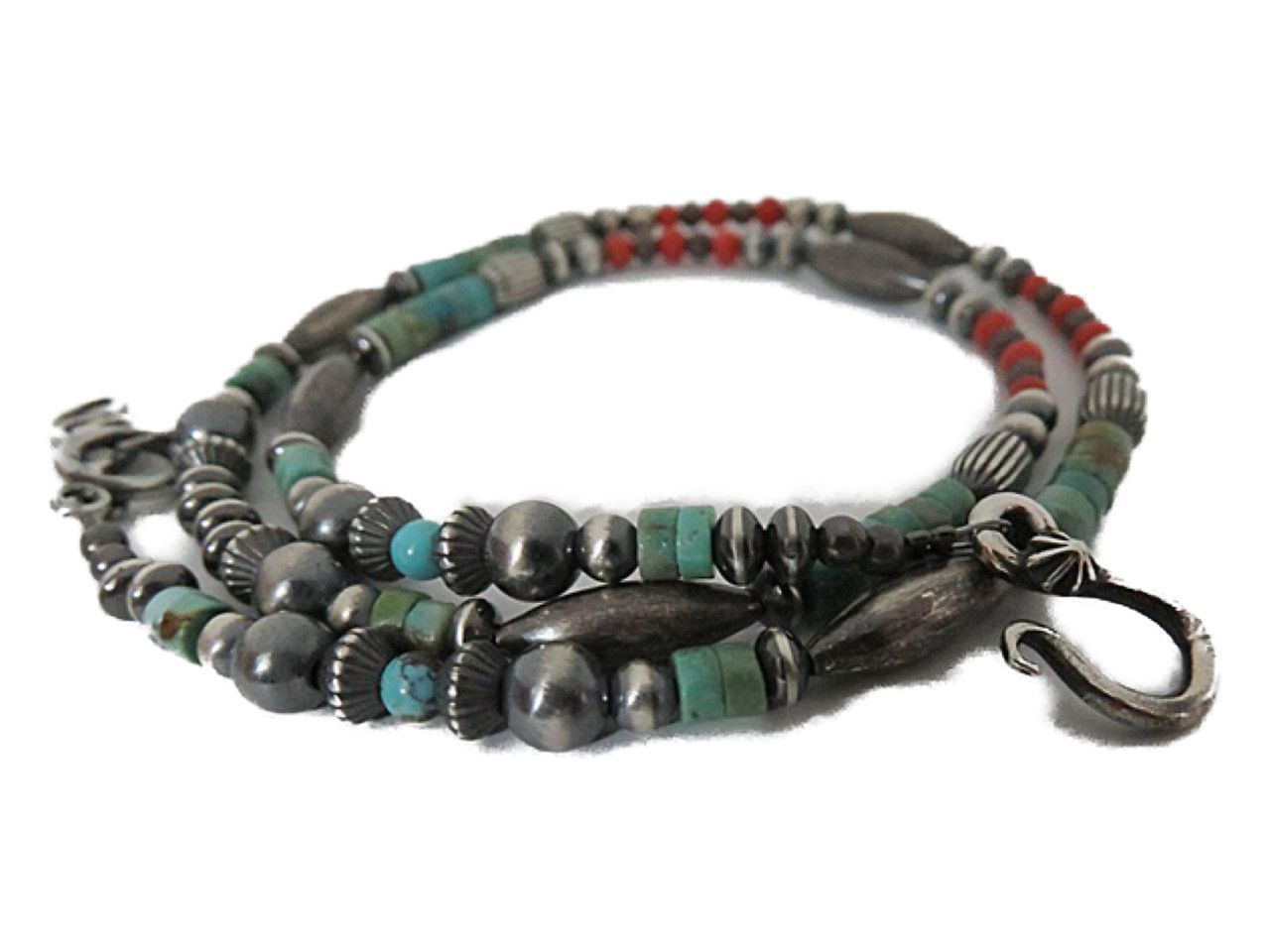 インディアンジュエリー ビーズネックレス ターコイズ シルバー925 コーラル ナバホパール inca-tq 4 coral