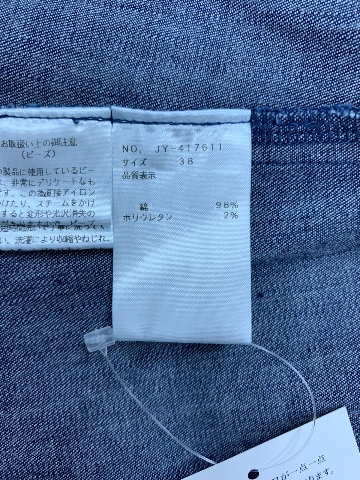 エムズグレイシー パールスタッズ付きデニムスカート 417611 38 ネイビー