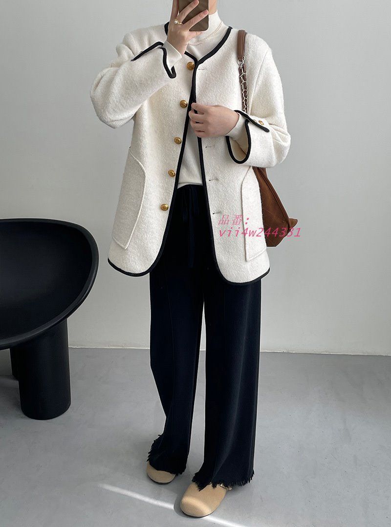 秋冬 コート ノーカラージャケット ウール40% コートコート レディース モールツイード ビジネス 羽織り 披露宴 ジャケット 長袖 2次会 アウター パーティ vii 4 w 244331