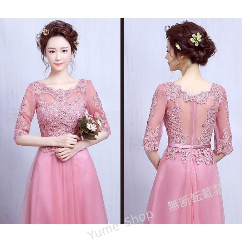 ♥ Aラインドレス パーティードレス カラードレス カクテルドレス 発表会 演奏会 ロングドレス フォーマルドレス イブニングドレス ピンク 半袖 Vネック ファスナー nhdw 114