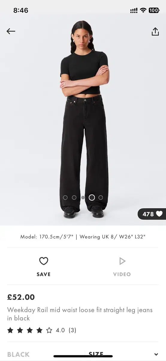 Weekday rail ブラックジーンズ デニム 27 サイズ