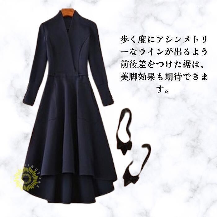 ワンピース レディース40代 フォーマル 春 春物 きれいめ Aライン 膝丈ワンピース ロングワンピース上品 長袖袖 Vネック 無地 膝丈ワンピー