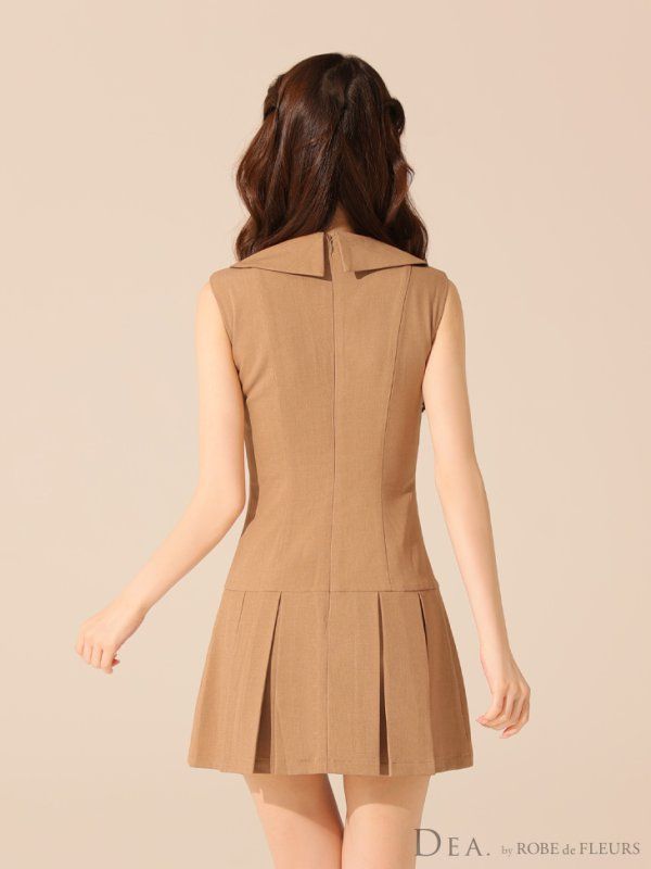 キャメル DE 3395-GY-2508 Lサイズあり DEA.|ディア ビッグカラー| ノースリーブ| プリーツ| フ | ミニドレス| キャバドレス