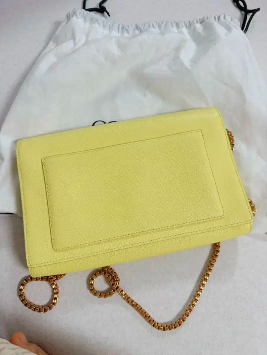 爽やかなイエローカラーにゴールドのチェーンがアクセントになっています。ダストバッグが付属しています。