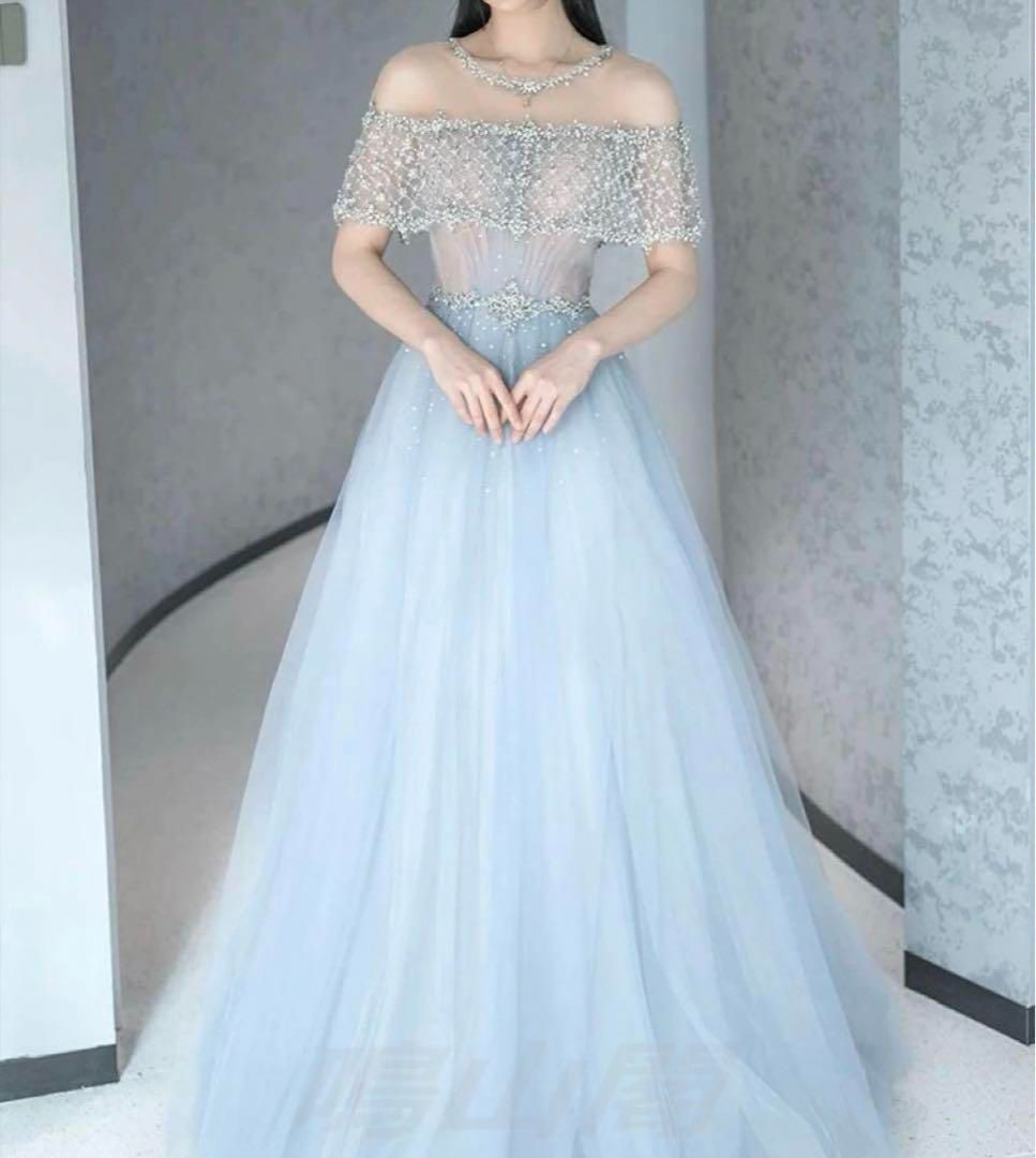 華やかなストーンにパールが輝く、ゴージャスでエレガントなロングイブニングドレス??