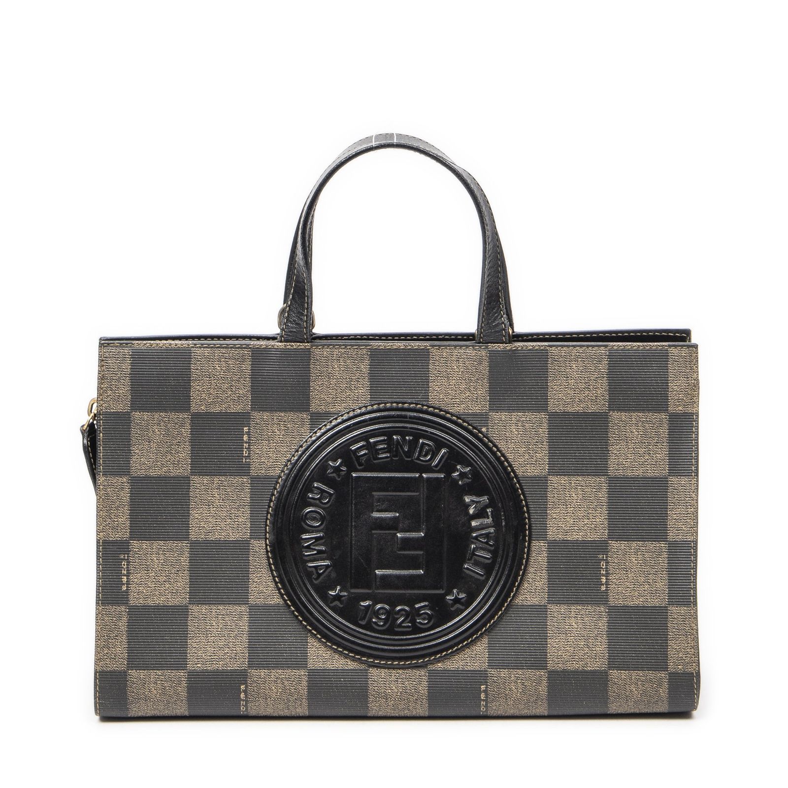 FENDI フェンディ2ウェイトートブラウン|ブラックペキンチェックコーティングキャンバスA