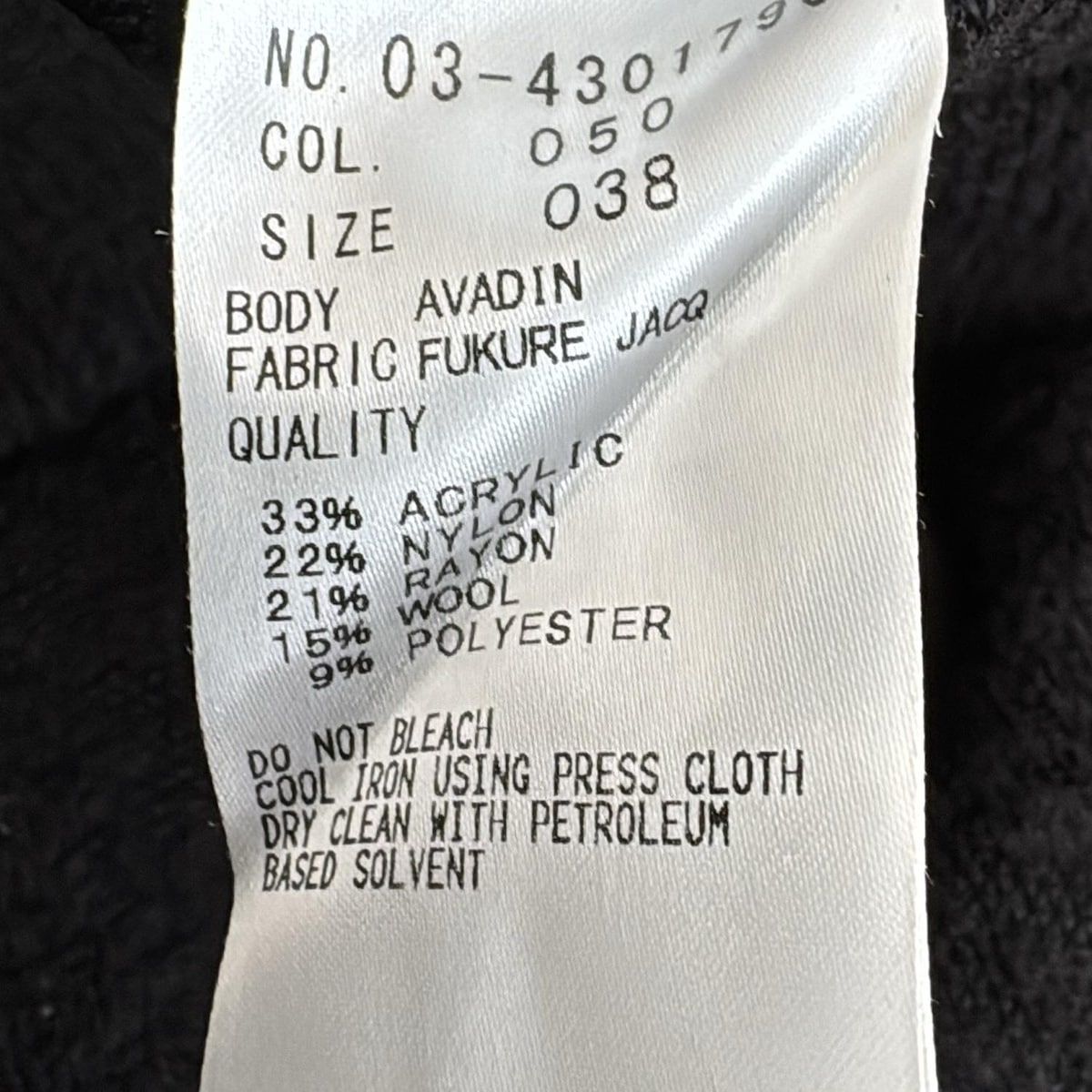 実寸サイズ:ゆき丈 : 約 58 cm