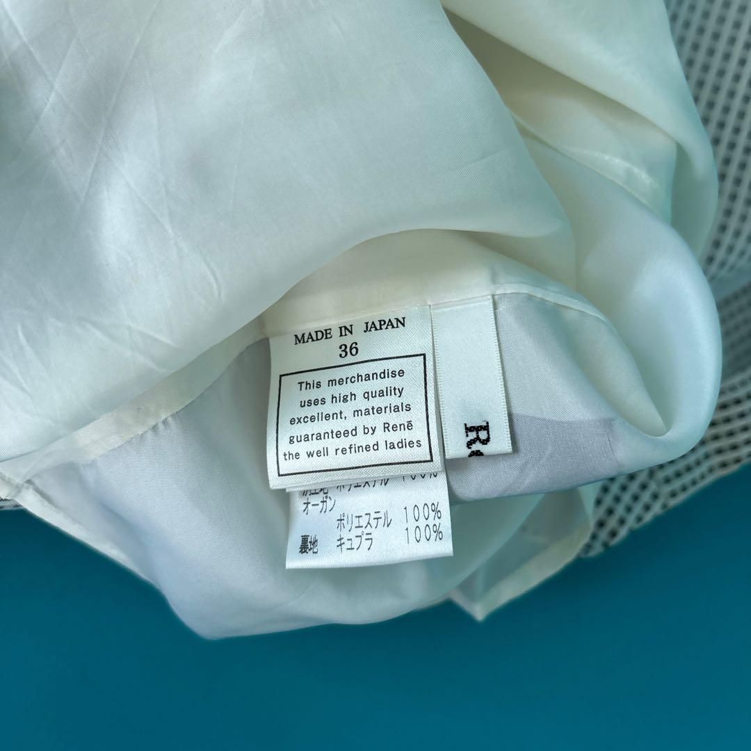 1554 Reneルネ 36 ブラック ノースリーブ 膝丈ドッキングフ ワンピース黒白チェック Aライン 大人可愛い