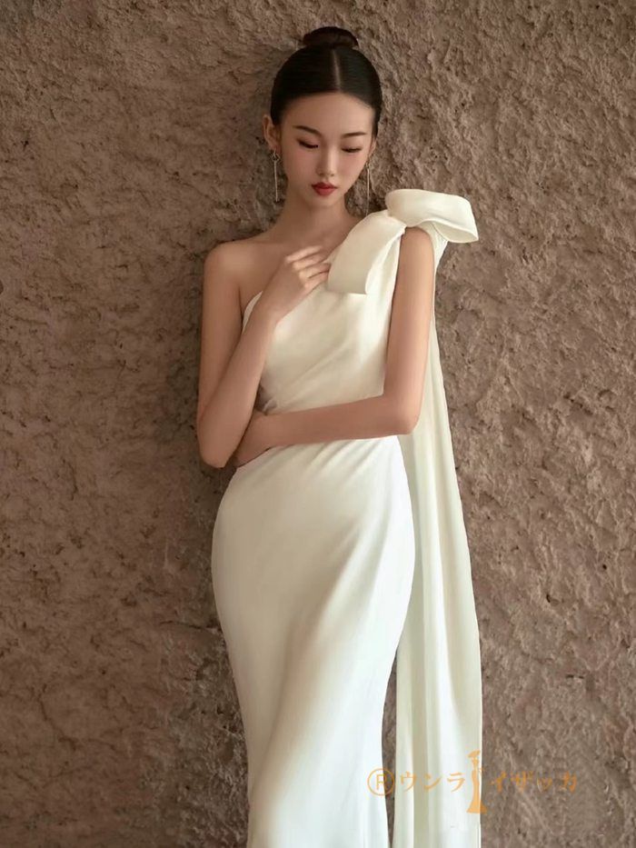 ドレス 花嫁 ウエディングドレス 前撮りドレス ウェディングドレス サテン 二次会ドレス オフショルダー オフショル 前撮り かわ
