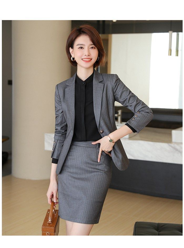 【カラー】typeA-ネイビー(パンツスーツ)、typeB-グレー(パンツスーツ)、typeC-ブルー(スカートスーツ)、typeD-杏色(スカートスーツ)