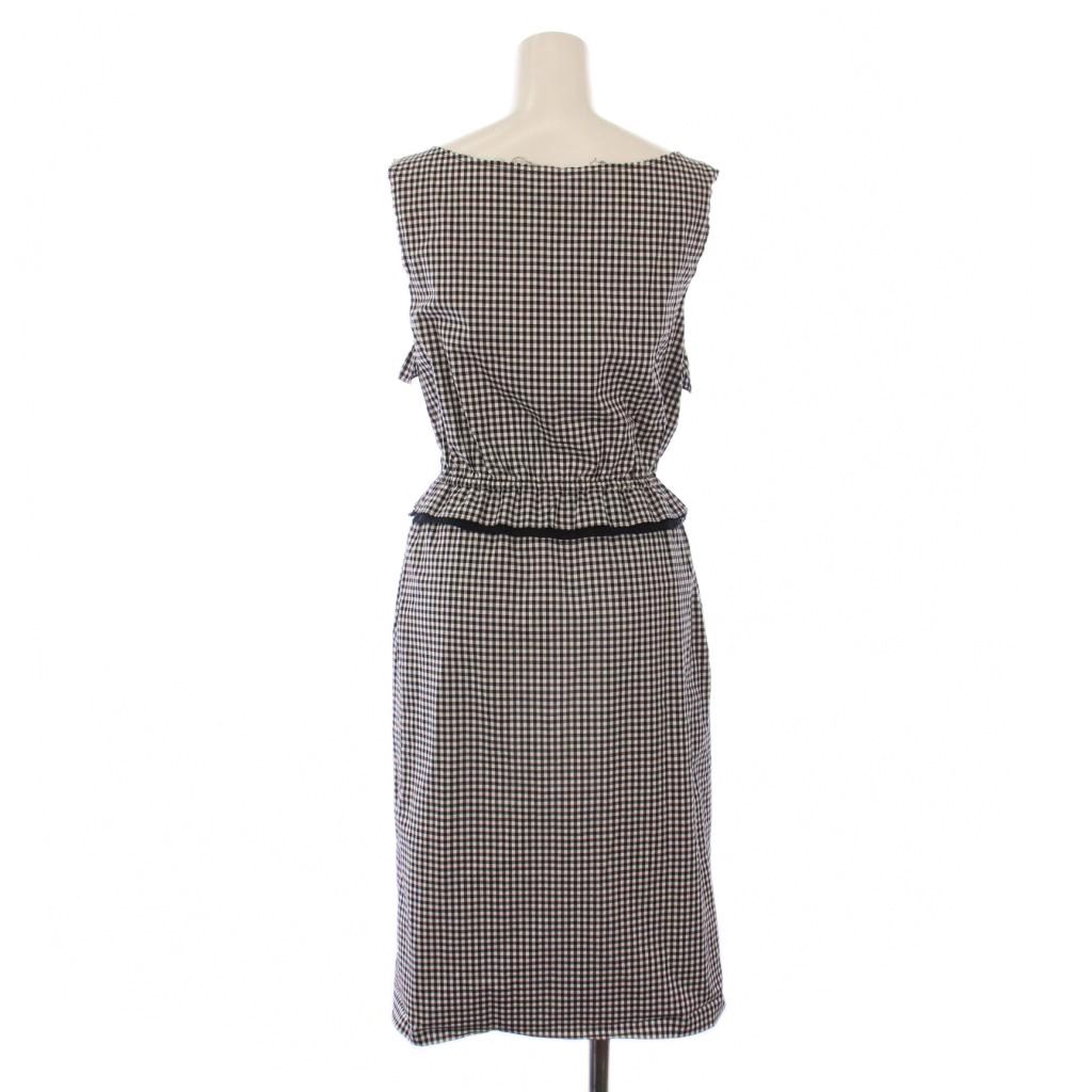 ミュウミュウ miumiu ワンピース ノースリーブ ひざ丈 フリル チェック柄 38 白 黒 MF 3771 |BM