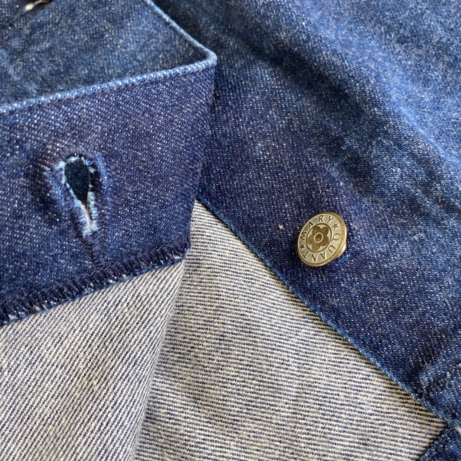 A 273 MARYQUANT マリークワントMサイズ コットン 濃ゆい青のデニムスカート前はボタン マリークワント 黒 シースルーフード付きパーカー透け感あり