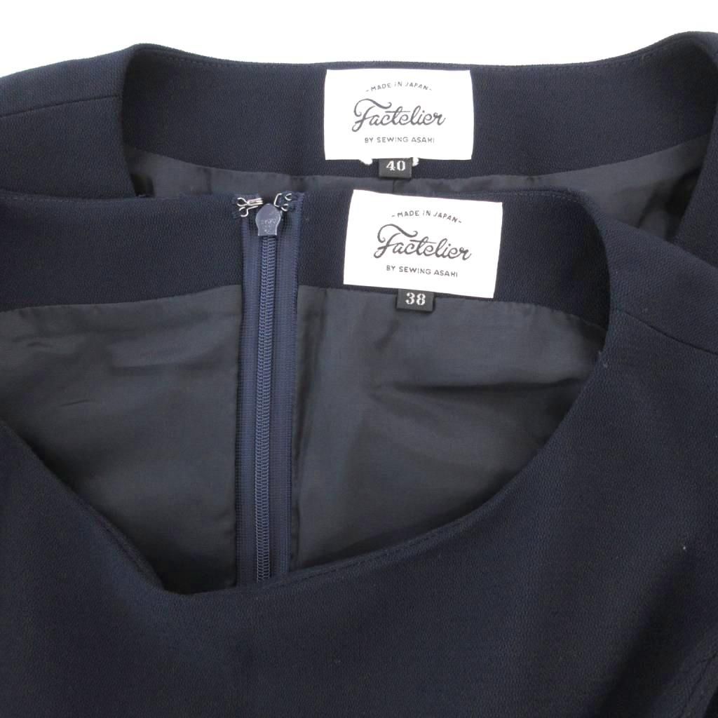 Factelier セットアップ ワンピーススーツ ウール ノーカラージャケット ノースリーブ 38 40 紺 ネイビー |UO