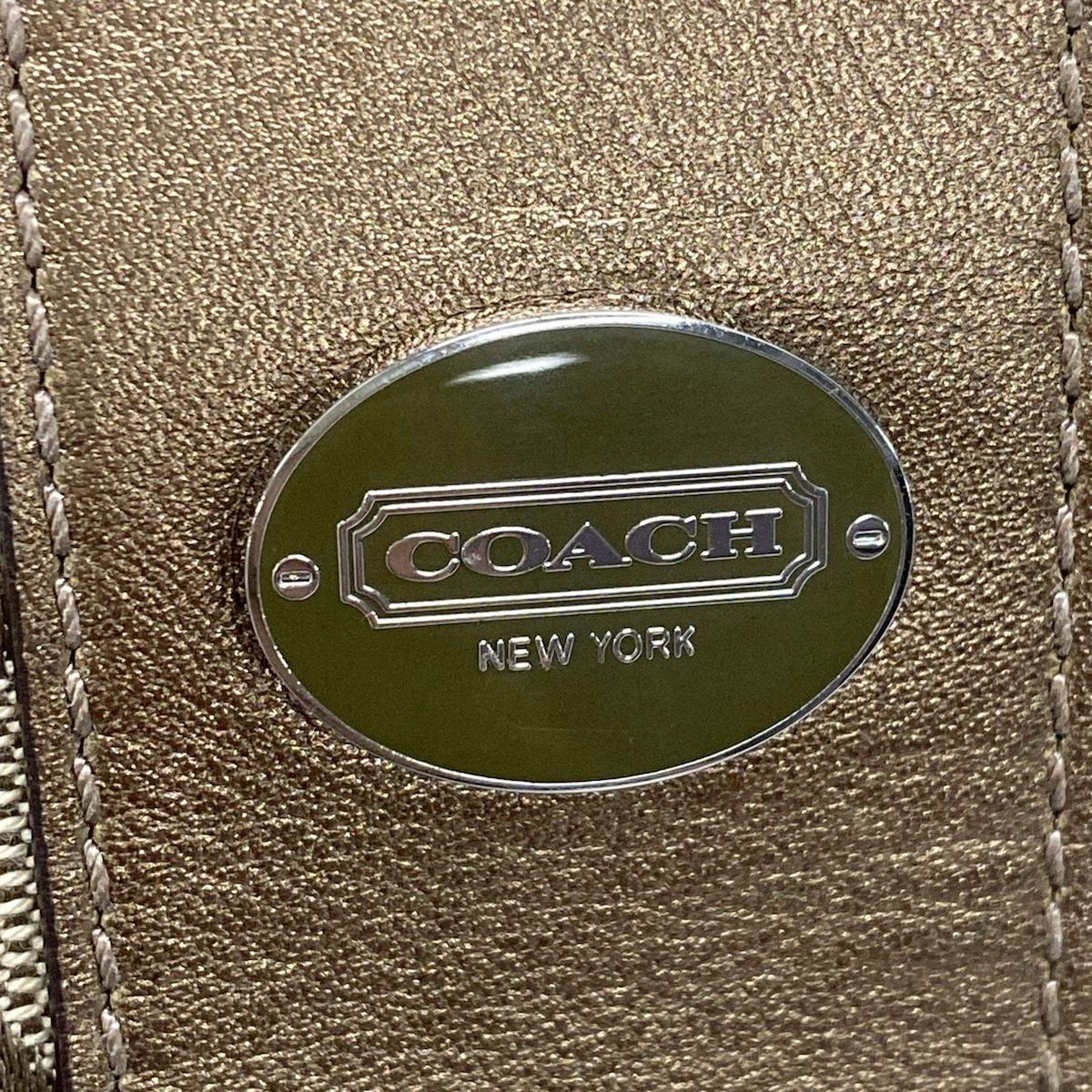 COACH コーチ ポーチ シグネチャー柄 48444 ベージュ×ブラウン レザー