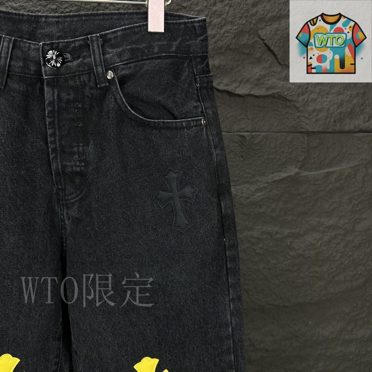 今日 Chrome Hearts 2025 伐木粉梵文クロスカップル水洗ジーンズ