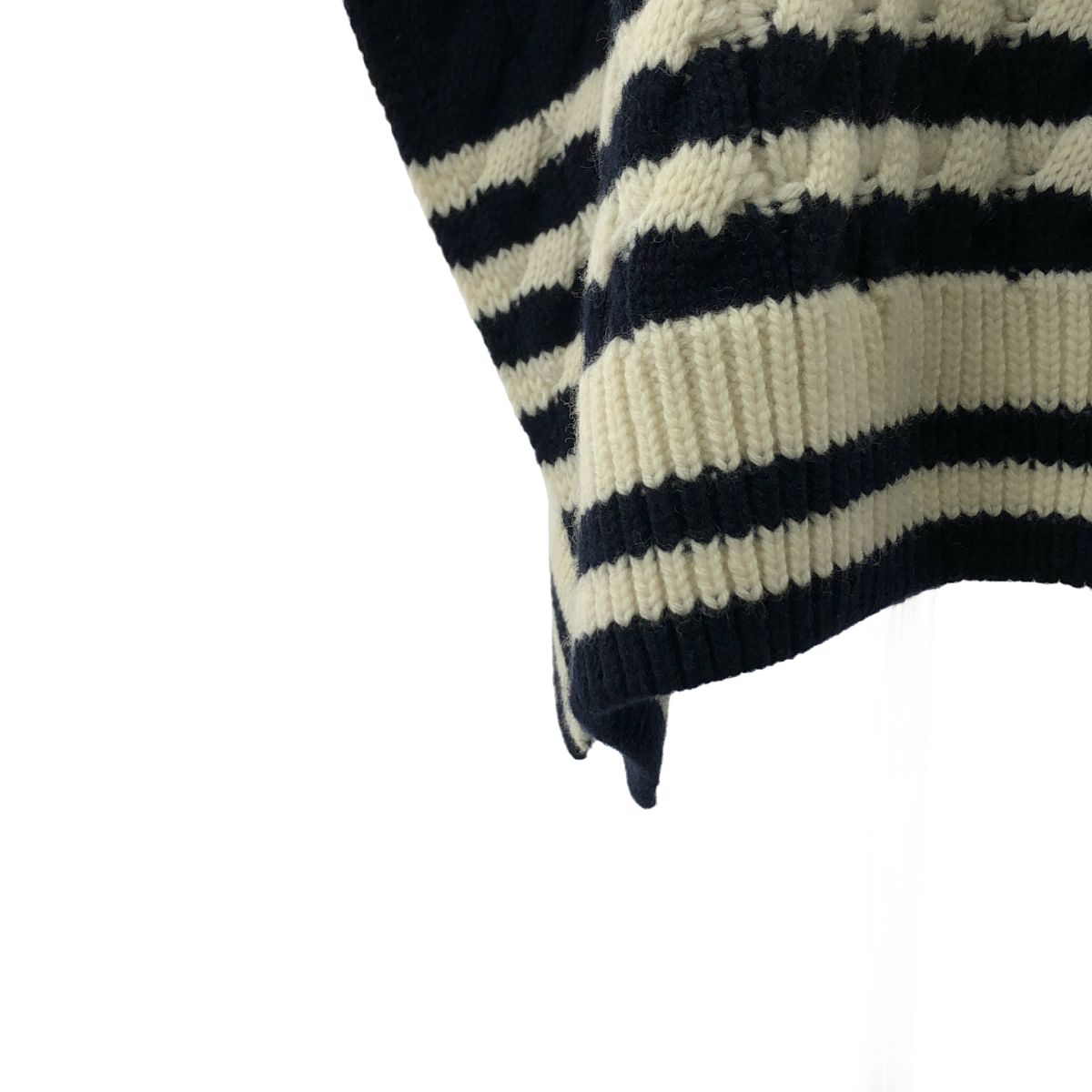 MAISON KITSUNE | メゾンキツネ カシミヤ混 ボーダー ロゴ ポンチョ ケープ ニット S ネイビー|ホワイト レディース