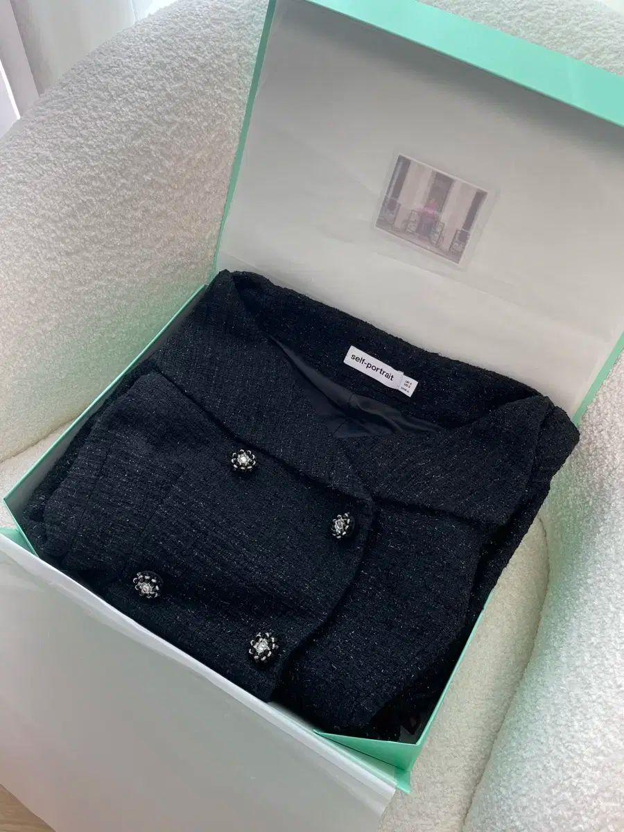 セルフポートレートブークレ素材を使用したオフショルダーのブラックミニドレスです。ツイード素材とジュエルボタンが高級感をプラスします。未着用の新品グレード品ですが、TACK タグがついています。江南と板橋の近くで直接販売できます。ご不明な点がなければ、すぐに安心してお支払いいただけます!