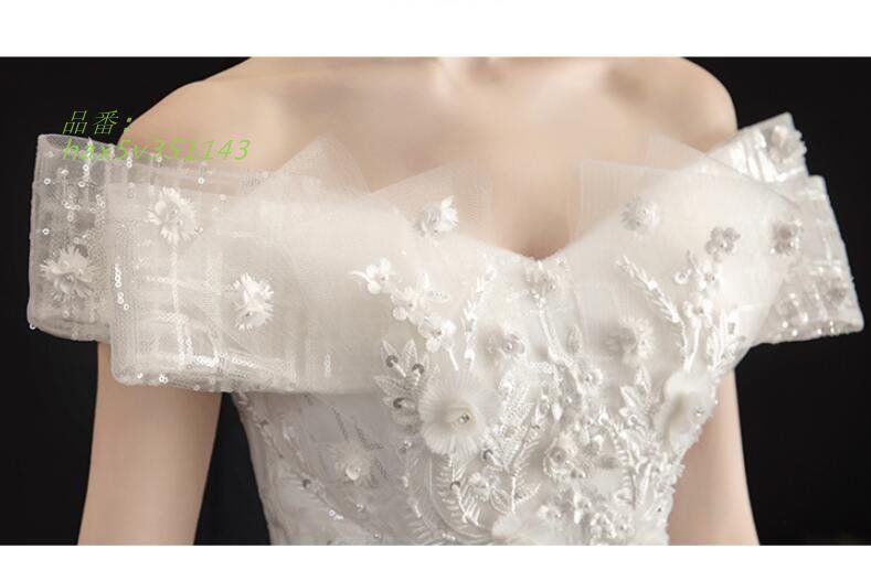 ウェディングドレス オフショルダー 白 花柄 ロングドレス Aライン 披露宴 結婚式ドレス 。挙式 スパンキラキラドレス ブライダルドレス 花嫁ドレス