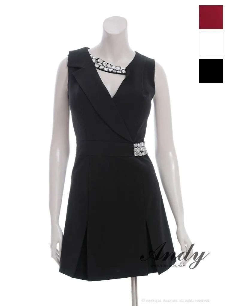 XSサイズあり【ANDY/アンディ】襟付き/ アシンメトリー/ バストカットアウト/ ビジュー/ ノースリーブ/ ボックスプリーツ/ Aライン/ フレア/ ワンピース/ ミニドレス/ キャバドレス[OF05] [OK2998-WR-2509]