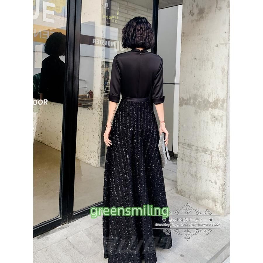 カラードレス カクテルドレス ロングドレス パーティードレス 発表会 お呼ばれ フォーマル イブニングドレス 大人らしい ブラック 黒 5分袖WP数量 価格926