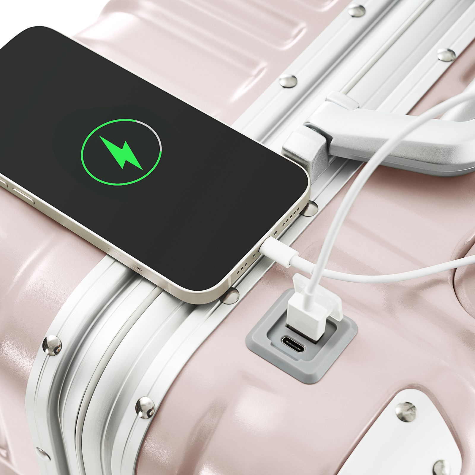 スーツケースのPOINT 1.【USB充電ポート付き】内側にお手持ちのモバイルバッテリーを接続すれば、簡単に充電できます。USB充電ポートのお使い方:1.ケーブルにモバイルバッテリーを接続します。2.USBコネクタに接続することで、スマートフォンなどの電子機器を充電することができます。ご注意: ※モバイルバッテリー、スマートフォン等のデバイスに外部接続するUSBケープル・アダプタ等は付属しません。 ※モバイルバッテリーを経由して充電を行います。スーツケース内部からは充電できません。※モバイルバッテリーの航空機内への持ち込み・預け入れについては各航空会社の規定をご確認ください。※コネクタに強い衝撃を与えないようにご注意ください。 ※航空機を利用する際は、モバイルバッテリーをUSBケーブルから外してください。※内側のモバイルバッテリーがポケットに入っている可能性があります。受け取り後にモバイルバッテリーが見つからない場合は、チャックを開けて確認してください。