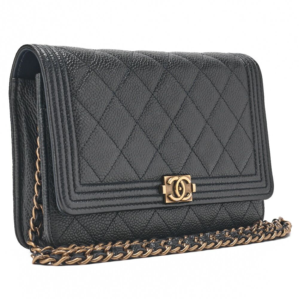 CHANEL シャネル ボーイシャネル マトラッセ チェーンウォレット キャビアスキン ダークネイビー ゴールド金具 レディースウォレット 折財布 レディース財布