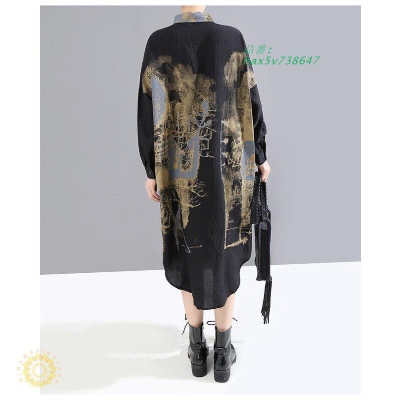 ワンピース レディース 長袖 シャツワンピース ロング丈 総柄 柄物 モード系 おしゃれ ブラック ゴールド グレー イベント お出かけファッション ナチュラル モダン お洒落 レディース デート イベント清楚 お出かけ シンプル ママ リラックス 母親 魅力的 フリーサイズ [OIS17]