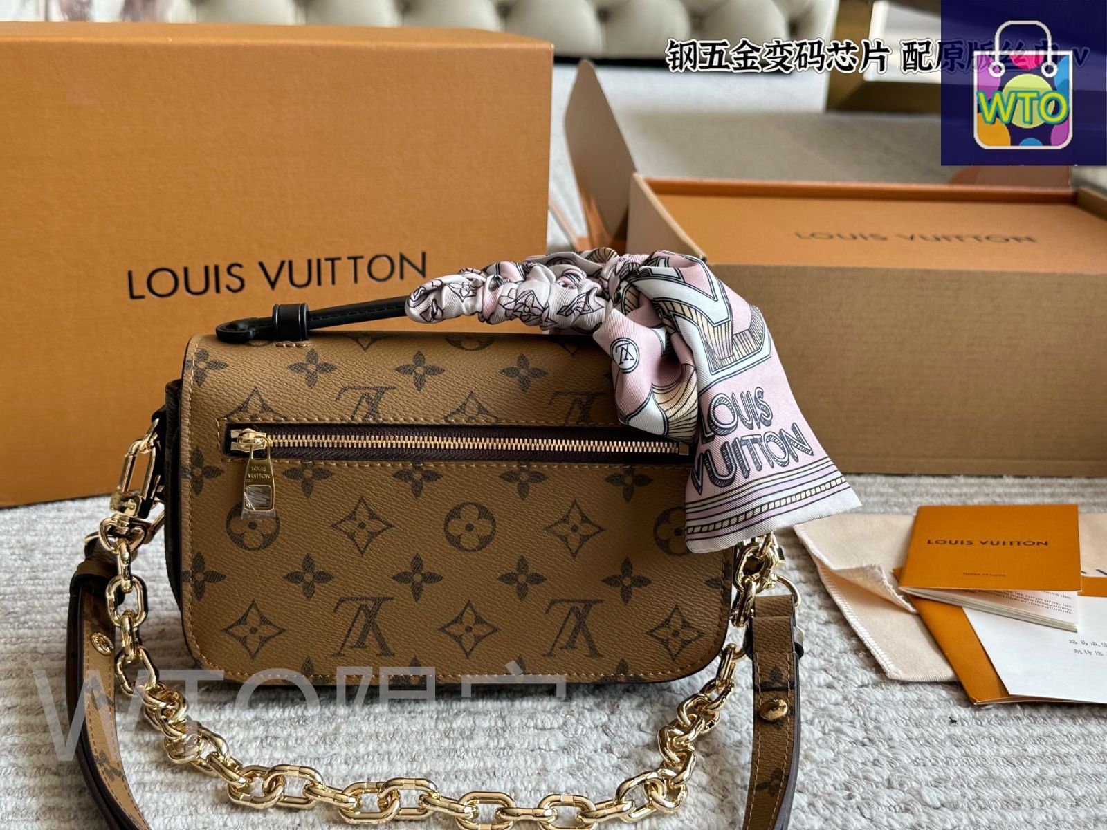 従来モデルと比べてサイズが縮小しただけでなく、新たにチェーンストラップが追加されました。このチェーンディテールが全体の精緻感を一層高め、Louis Vuitton らしい個性的なデザインを演出しています。内部にはスマホ・財布・化粧品を収納できるポケットが設けられ、実用性も抜群です。