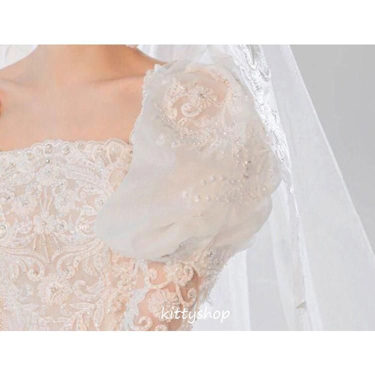 ウェディングドレス 袖あり 結婚式ドレス トレーンドレス ホワイトドレス 海外挙式 花嫁ドレス 長袖 パフスリーブ エレガント キレイめ