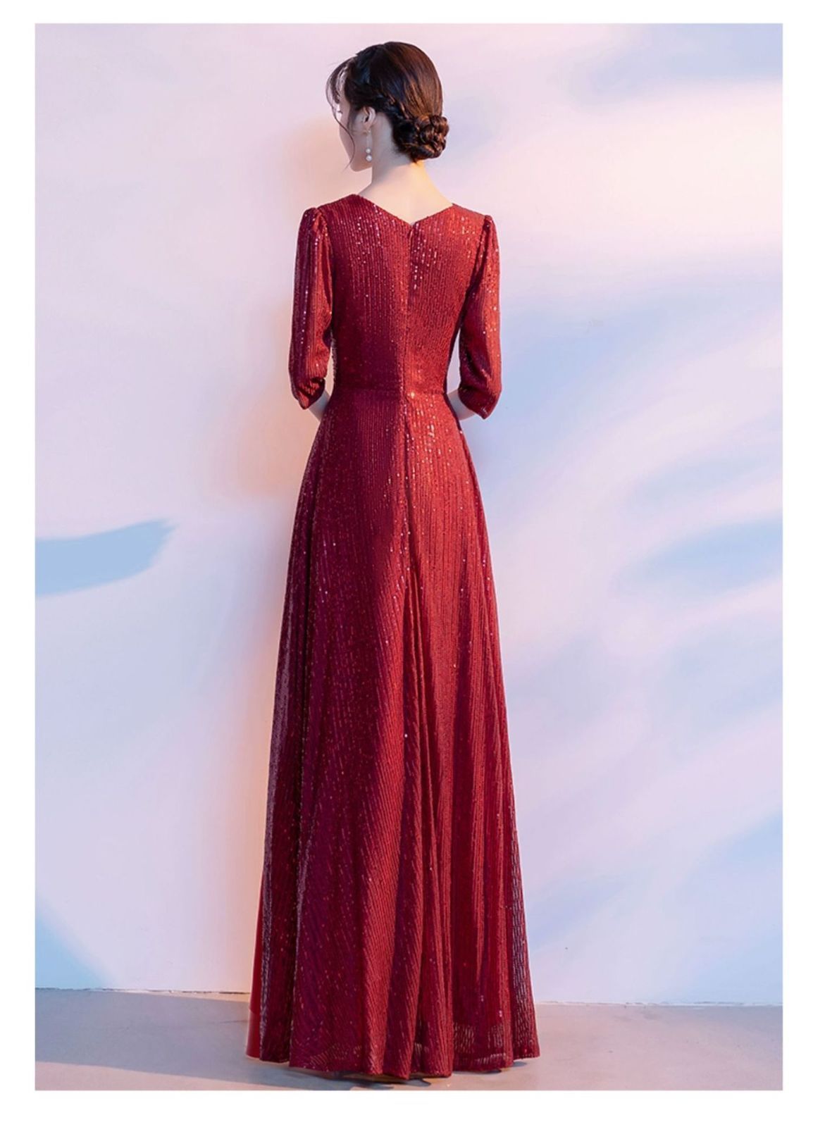 パーティードレス Vネック ワンピース ドレス パーティー 結婚式 袖あり ロング丈 ゆったり 体型カバー 発表会 フォーマル お呼ばれワンピース 披露宴 上品 Aライン シンプル きれいめ 大人 可愛い yuwei 57 DZ 30