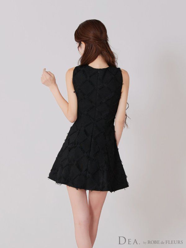 XSサイズあり【DEA./ディア】フリンジジャガード/ ダブルボタン/ フレア/ ミニドレス/ キャバドレス[DE4311-BE-2509]