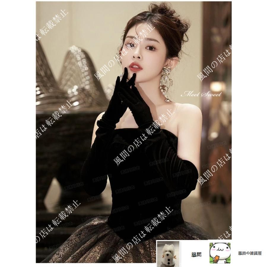 ♥ カラードレス プリンセスライン ブラック ベアトップ 黒 ロングドレス ウェディングドレス 結婚式 二次会 花嫁 前撮り 演奏会 発表会 ステージ衣装 お洒落