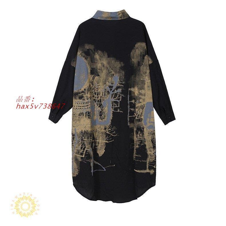 ワンピース レディース 長袖 シャツワンピース ロング丈 総柄 柄物 モード系 おしゃれ ブラック ゴールド グレー イベント お出かけファッション ナチュラル モダン お洒落 レディース デート イベント清楚 お出かけ シンプル ママ リラックス 母親 魅力的 フリーサイズ [OIS17]