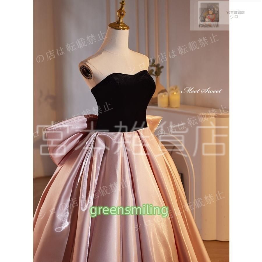 カラードレス プリンセスライン ピンク ベアトップ 大きいリボン ロングドレス ウェディングドレス 結婚式 二次会 花嫁 前撮り 演 今週