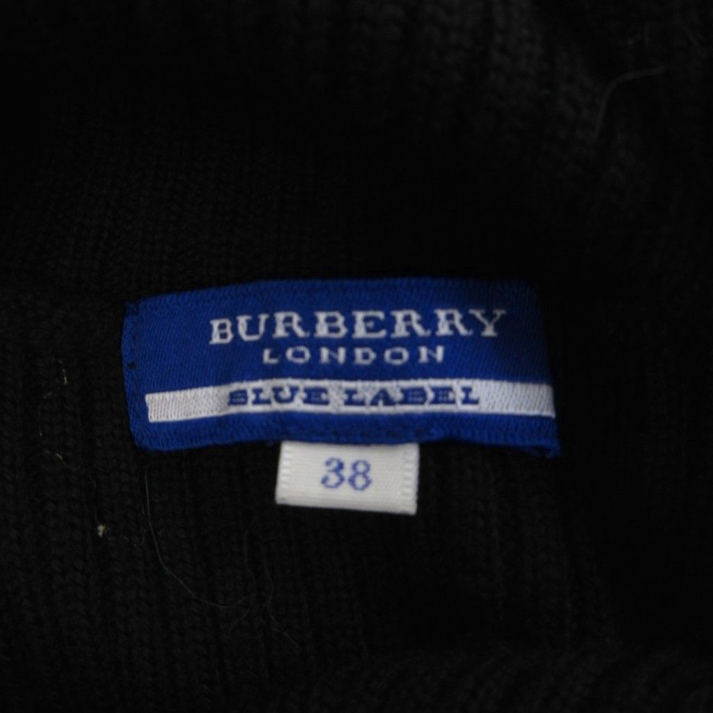 バーバリーブルーレーベル BLUE LABEL ハイネックワンピース パフスリーブ ボア ブークレーニット ポニー刺繡 黒 ブラック 38 約M IBO 79
