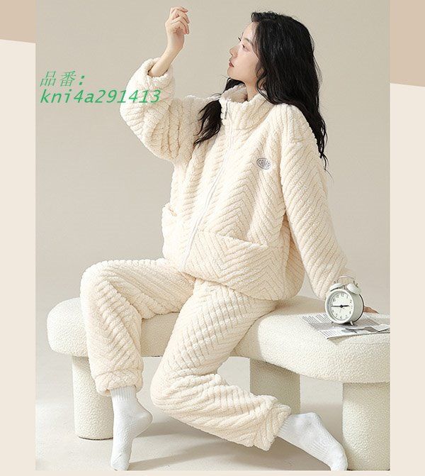 パジャマ レディース 冬 上下セット ルームウェア 前開き あったかい 秋冬 ゆったり 厚手 部屋着 大きいサイズ 着る毛布 ナイトウェア 可愛い 裏起毛 kni 4 a 291413
