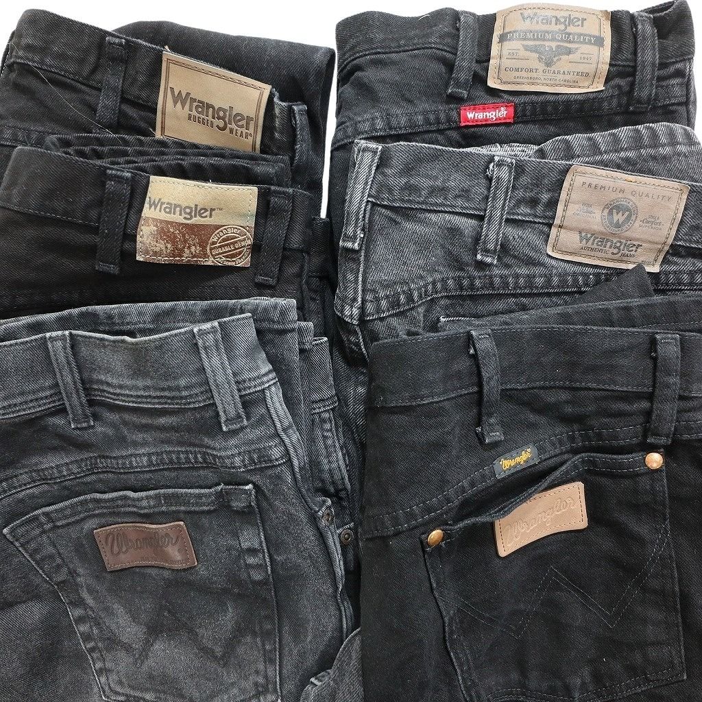 新品卸 まとめ売り Wrangler ラングラー ブラックデニム パンツ 6枚セット (メンズ 36 /38 ) フェード 革パッチ アメカジ 新品 新品 NC1290