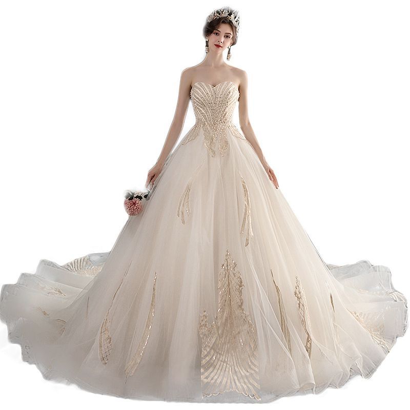 チューブトップ ロングトレーン ウエディングドレス 主婚 法式 森系 新娘 超仙 梦幻 シンプル 婚 今週 ZZ 520