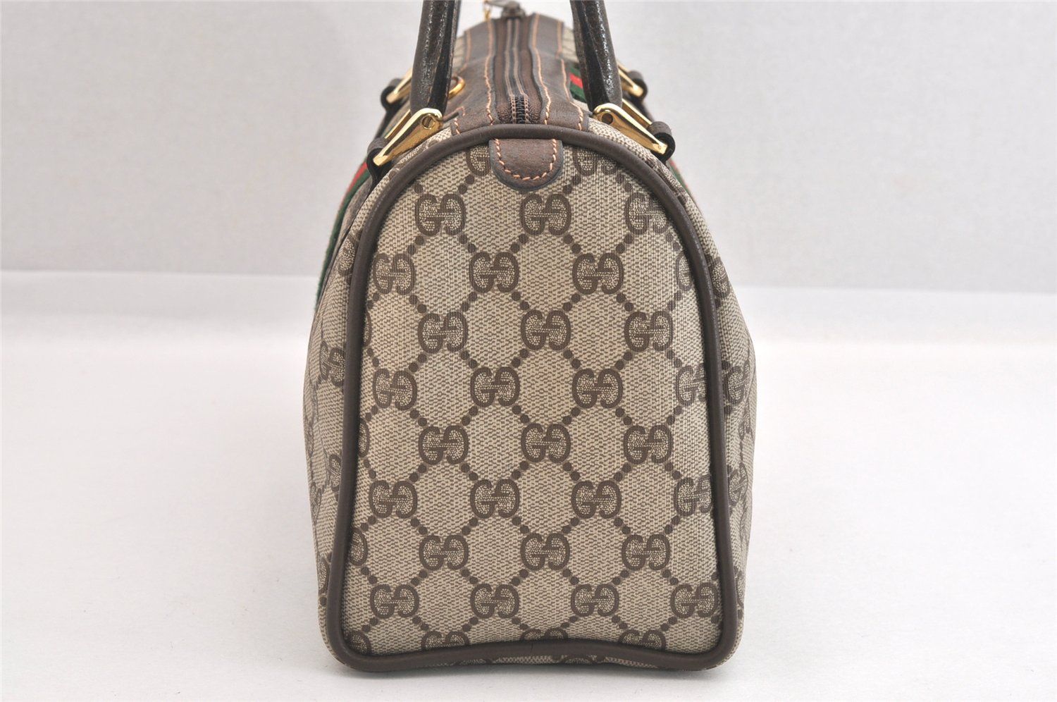 GUCCI グッチ ウェブ シェリーライン ハンドボストンバッグ GGピーブイシー レザー ブラウン 2501 N