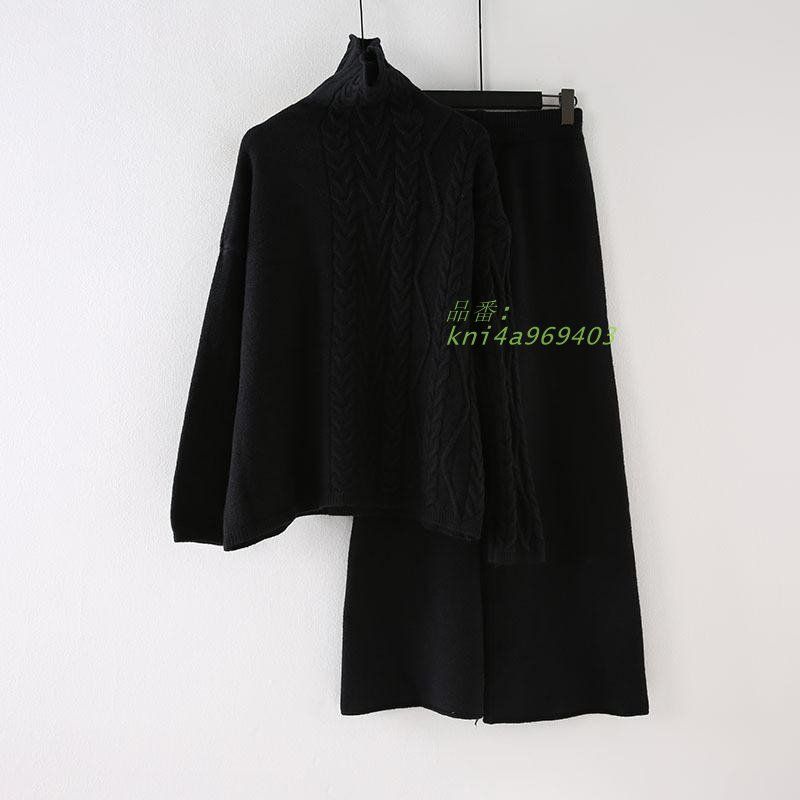 セットアップ レディース ニット 秋冬 ワイドパンツ 長袖 セーター 上下セット ゆったり カジュアル 部屋着 ハイネック kni 4 a 969403