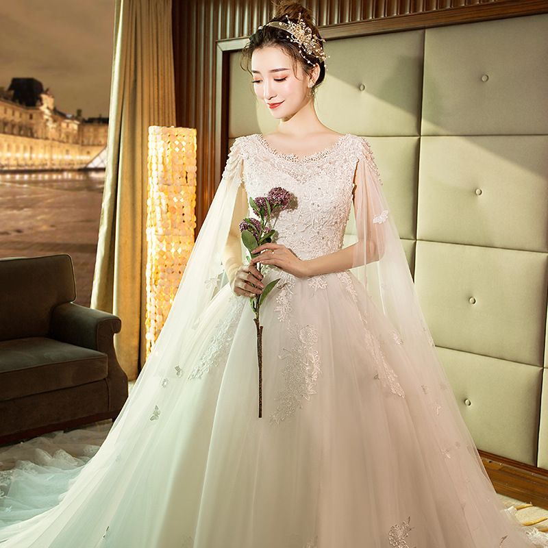 フレンチスタイル ロングトレーン ウエディングドレス 2025 主婚纱 法式 复古 森系 赫本風 显瘦