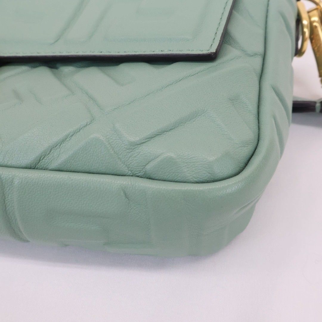 FENDI マンマバゲット 2 way ショルダーバッグ 8 BR 600 グリーン ゴールド金具 レザー