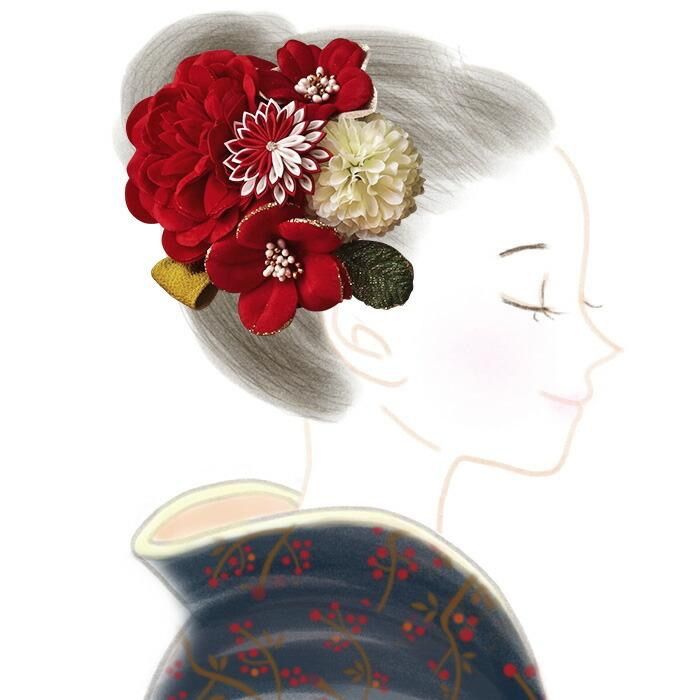 髪飾り 成人式 2点セット 花 大 ミニ uピン コーム つまみ細工 椿 桜 紫 白 赤 選べる2タイプ 日本製 ケース付 ウェディング ドレス パーティー wkx 1014