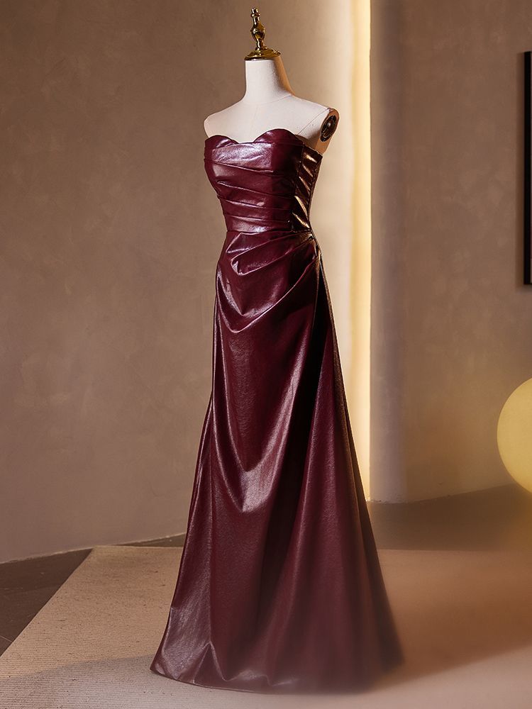 酒红色 ロングドレス 抹胸 ノースリーブ 晚礼服 優雅 気質 大人美 披露宴 結婚式 二次会 演奏会 舞台 成人式 新婦 礼服 パーティー 主役ドレス