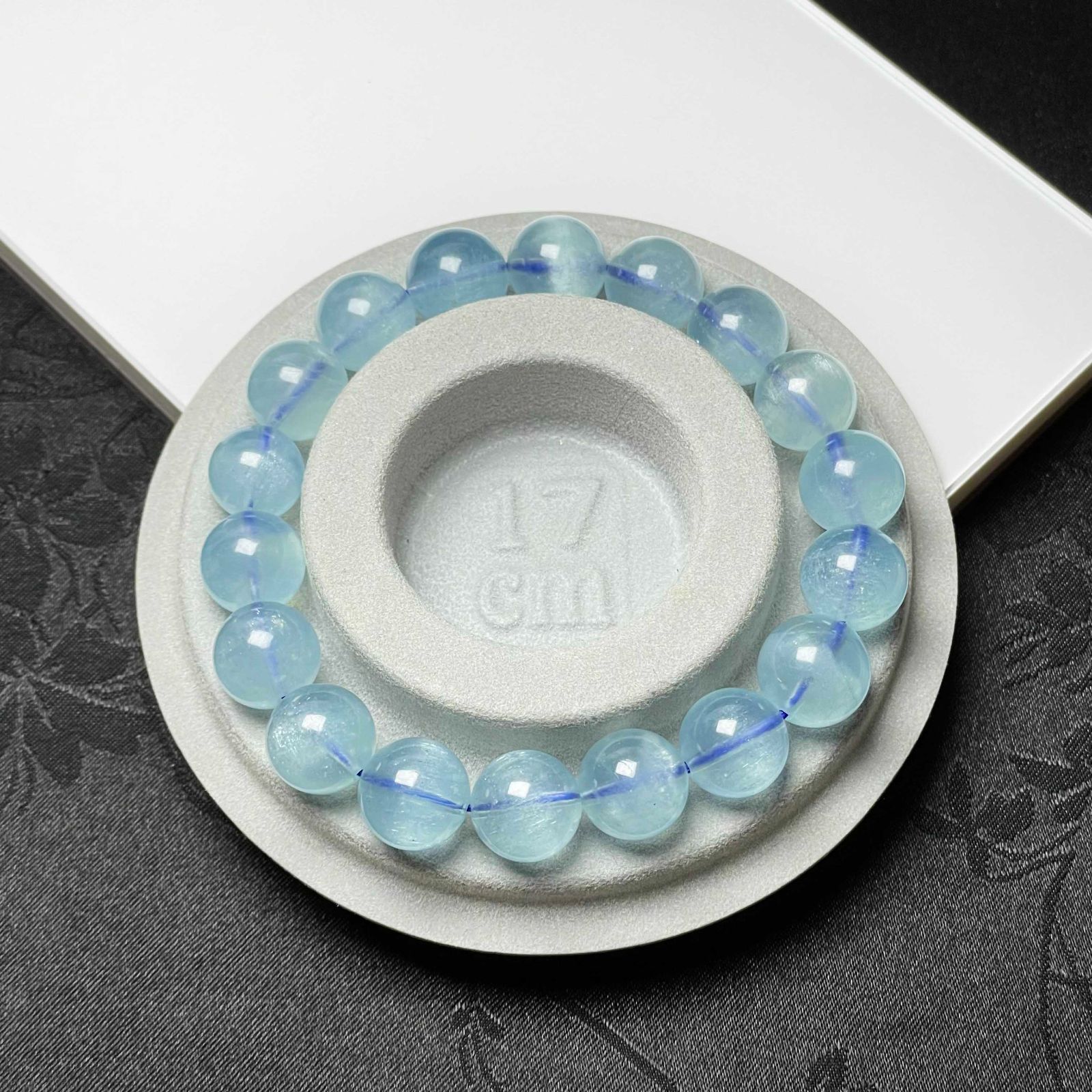 上級 EU製 ブルーアクアマリン パワーストーン ブレスレット 天然石 原石 お守り プレゼント 11.8-12.4 mm ZZ 1654