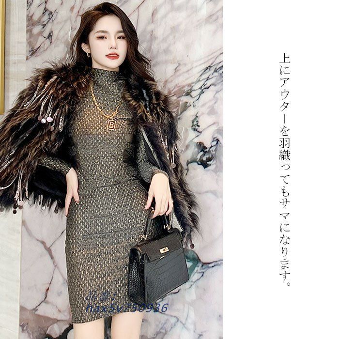 総柄ハイネック仕立て ショートタイト長袖ワンピース パーティー キャバ スナック ラウンジ 韓国 ドレス hax 5 v 750936